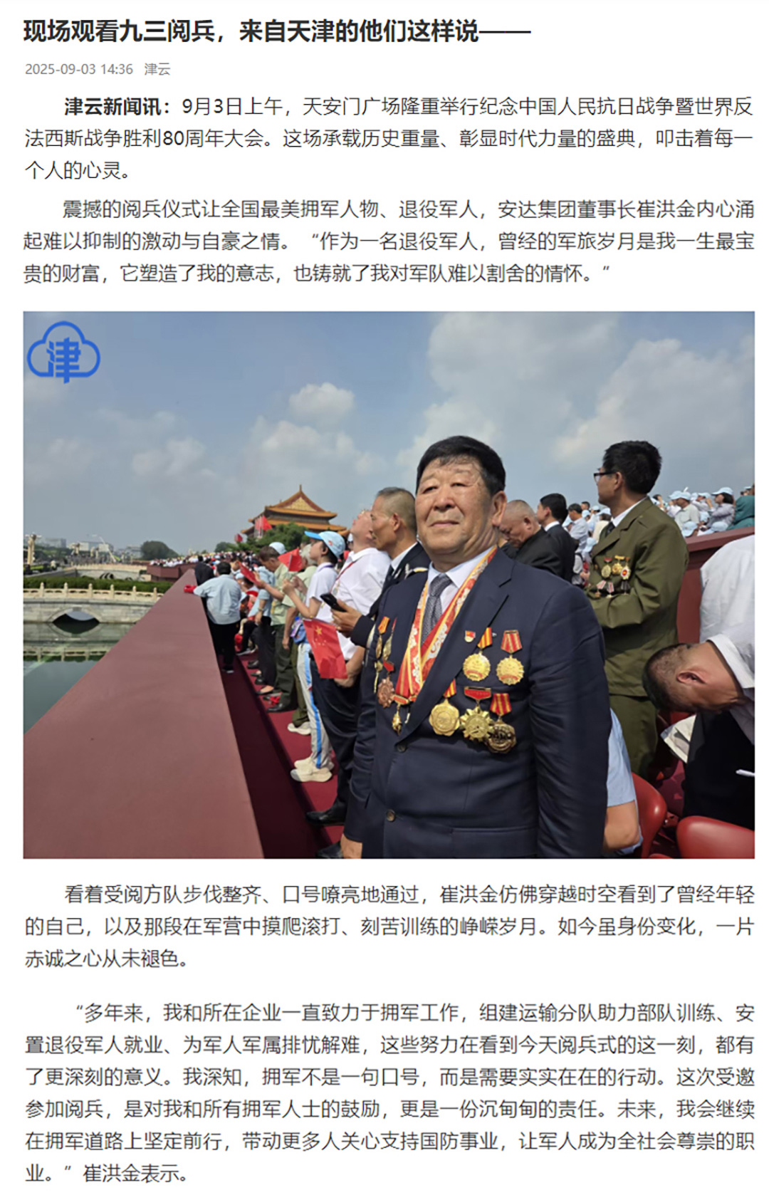 天津新闻频道报道崔洪金参加9.3阅兵事迹