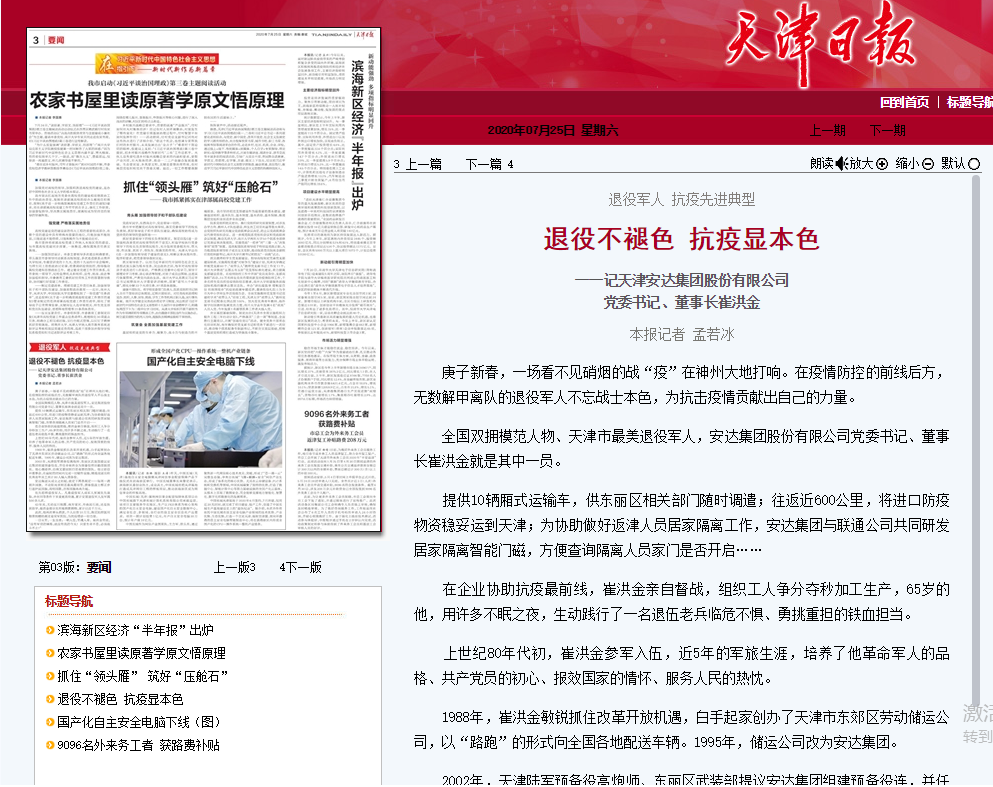 > 7月25日 《天津日报》 退役不褪色 抗疫显本色