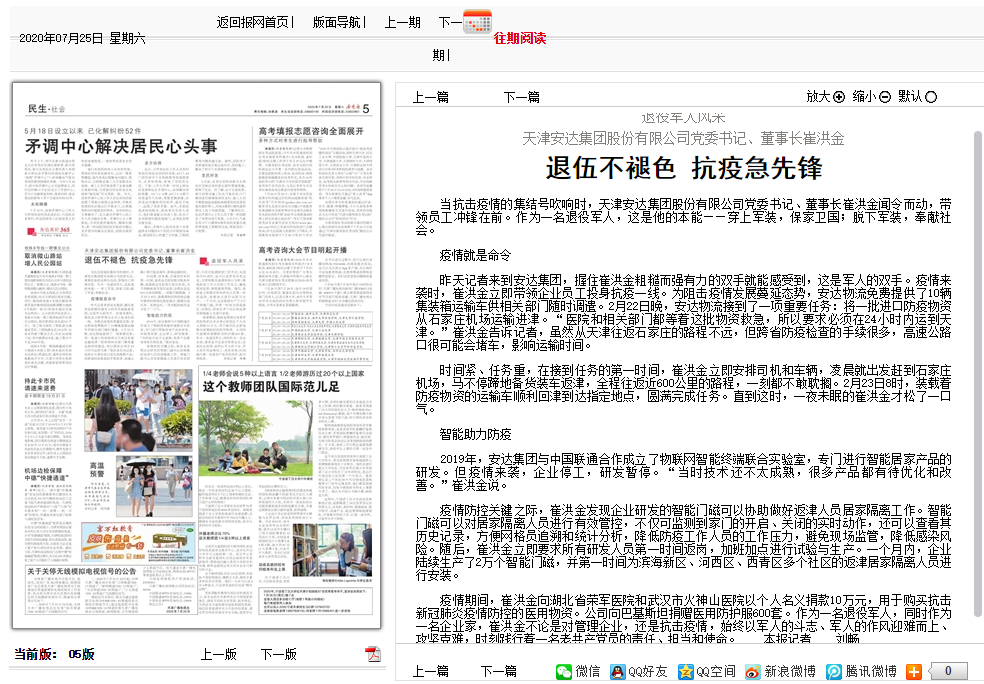 > 7月25日《今晚报》退役军人风采-退伍不褪色 抗疫急先锋