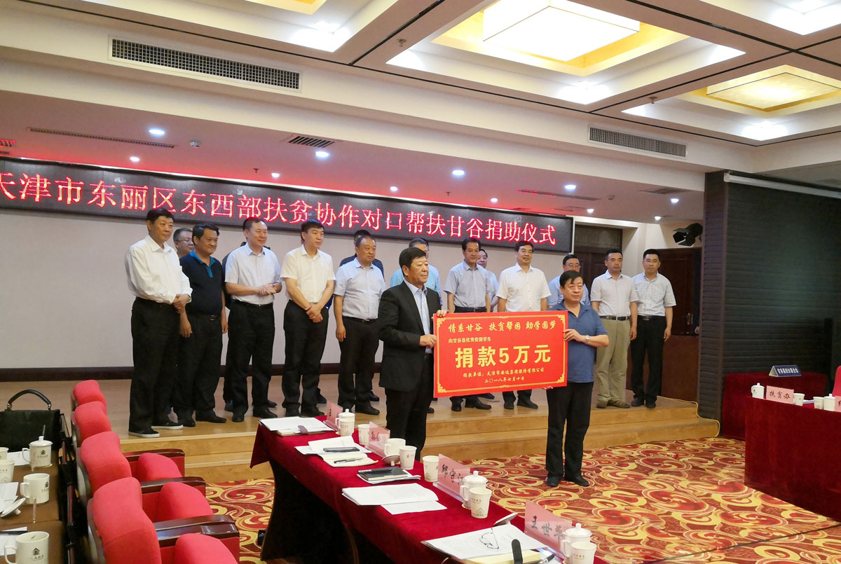 调研组来到安远镇,详细了解了农村“三变”改革及“扶贫车间”生产情况,并实地查看了东丽区援建甘谷二中学生公寓楼建设进展情况。 在随后召开的座谈会上,调研组听取了申君明详细介绍了甘谷县2018年脱贫攻坚工作和2017年东丽区帮扶项目建设情况及帮扶资金使用情况。并希望双方不断创新帮扶方式,进一步加大帮扶力度,在农业产业链延伸、危旧房兜底改造、“扶贫车间”建设、劳务合作、人才交流等方面给予帮助支持,助推甘谷县脱贫攻坚和经济社会发展。 夏新对甘谷县经济社会发展取得的成绩给予高度评价,认为甘谷县委、县政府紧盯全面建成小康社会目标,聚焦精准扶贫精准脱贫,攻坚克难,真抓实干,城乡基础设施日臻完善,富民产业不断发展壮大,群众幸福感明显提升,社会发展活力进一步增强,脱贫攻坚取得明显成效,全县各项工作呈现出良好的发展势头。在下阶段帮扶中,东丽区将充分发挥自身发展优势,继续加大帮扶资金、产业发展、人才交流、劳务输转、劳动力就业、农产品销售渠道拓展、文教卫事业等方面的投入力度,积极落实帮扶政策措施,努力寻求双方在更多领域、更广范围的合作机遇,推动两地实现合作共赢、协同发展,确保如期打赢脱贫攻坚战。 会上,东丽区副区长李光华向甘谷县捐赠2018年帮扶资金1780万元;东丽区政协副主席、华明街道党委书记郑立向西坪镇捐赠2018年帮扶资金30万元;作为企业家代表,安达集团股份有限公司董事长崔洪金向贫困学生捐赠助学金5万元。